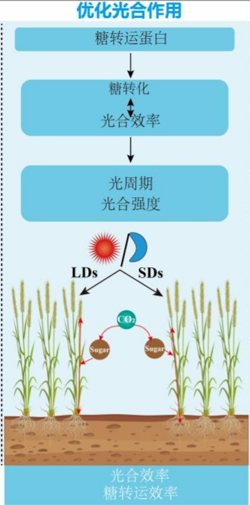 其次,光合作用是影響植物生長(zhǎng)發(fā)育的重要因素。光合作用是糖轉(zhuǎn)運(yùn)蛋白的“任務(wù)發(fā)布者”,其產(chǎn)生的能量需求信息就像下達(dá)的指令,糖轉(zhuǎn)運(yùn)蛋白如同繁忙港口的智能裝卸設(shè)備,能夠迅速且精確地將“貨物”(糖分)卸載并轉(zhuǎn)運(yùn)至目的地,加速糖分的運(yùn)輸調(diào)配,以滿足植物生長(zhǎng)各環(huán)節(jié)的能量需求。通過(guò)建立光合作用與糖轉(zhuǎn)運(yùn)蛋白之間的動(dòng)態(tài)調(diào)控模型,優(yōu)化了植物對(duì)光能的利用及糖分的分配,這就需要“招募”更多的糖轉(zhuǎn)運(yùn)蛋白快遞員投入工作,加快糖類的運(yùn)輸速度,讓其光合作用的能量轉(zhuǎn)化成果快速在體內(nèi)流通。