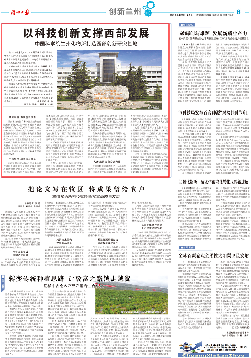 【蘭州日報】以科技創(chuàng)新支撐西部發(fā)展?中國科學院蘭州化物所打造西部創(chuàng)新研究基地