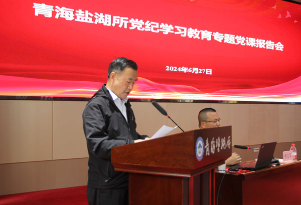 王永晏在主持會議時指出,通過此次黨紀學習教育專題黨課報告會,要在全所上下進一步營造學習貫徹習近平新時代中國特色社會主義思想的濃厚學習氛圍,將黨紀學習教育內(nèi)化于心,外化于行,把鐵的紀律轉(zhuǎn)化為新時代新征程中的日常習慣和行為準繩,把學習成效轉(zhuǎn)化為政治自覺、思想自覺和行動自覺,將《條例》學習融入日常、抓在經(jīng)常,做到真抓實學,學深學透學到位。堅持兩手抓、兩促進,把開展黨紀學習教育同學習習近平總書記重要講話精神、落實中國科學院黨組重大決策部署及推進重點實驗室建設(shè)等重點任務(wù)結(jié)合起來,為加快搶占鹽湖科技制高點、加快建設(shè)世界級鹽湖產(chǎn)業(yè)基地營造正氣充盈的科研環(huán)境。