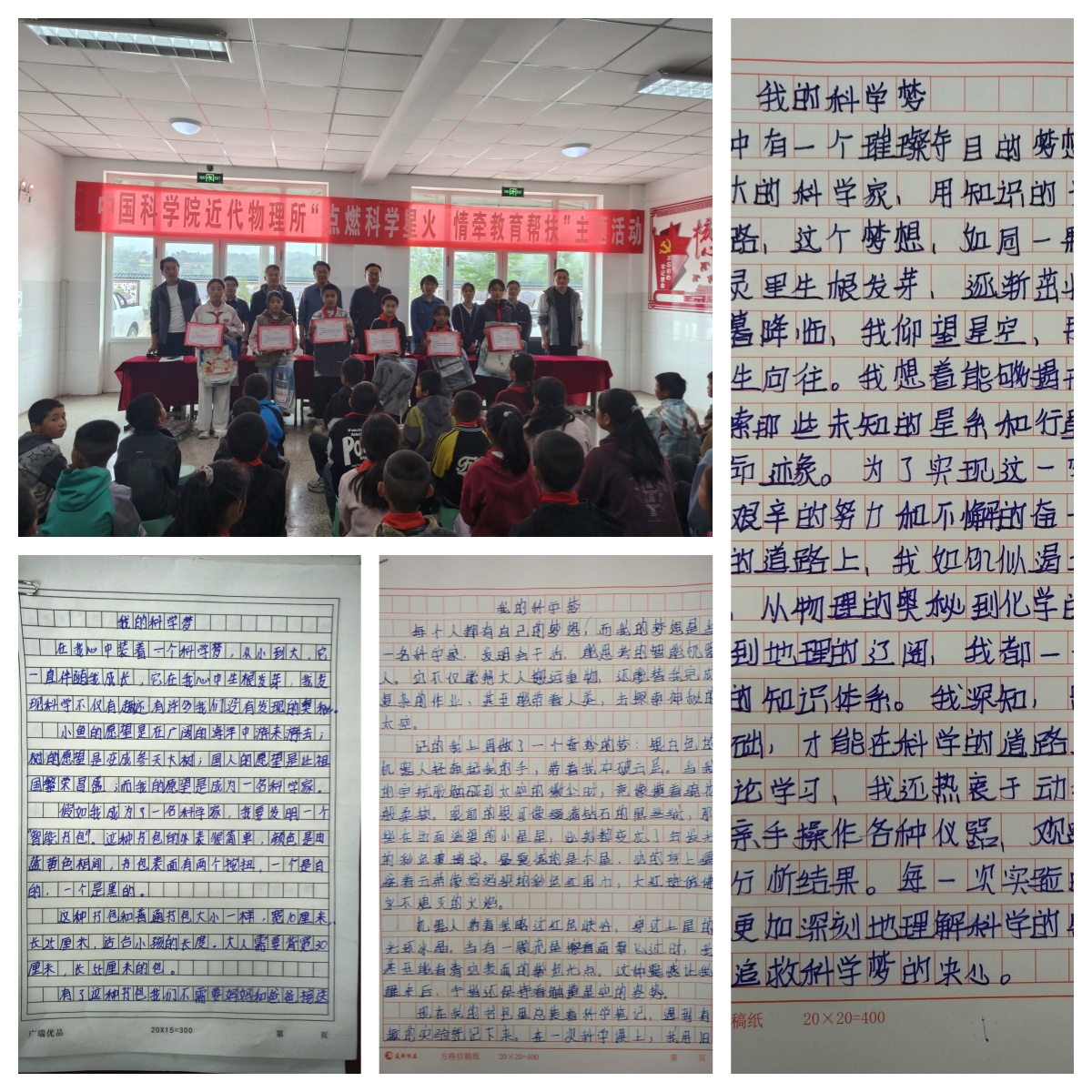 報告結(jié)束后,近代物理所黨辦相關同志為“我的科學夢”主題征文比賽中獲獎同學頒發(fā)了證書和獎品。陳家集鎮(zhèn)黨委書記楊文華代表鎮(zhèn)黨委政府,對近代物理所長期以來在“智志雙扶”方面給予的大力支持表示衷心感謝,并向研究所贈送了題為“教育幫扶育桃李,情暖校園映初心”的錦旗。