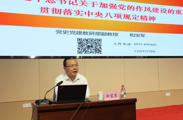會議首先邀請青海省委黨校和寶軍副教授作題為《深入學(xué)習(xí)習(xí)近平總書記關(guān)于加強黨的作風(fēng)建設(shè)的重要論述 貫徹落實中央八項規(guī)定精神》的專題黨課報告。報告強調(diào)要充分認識深入貫徹中央八項規(guī)定精神學(xué)習(xí)教育的重大意義,深刻領(lǐng)悟把握中央八項規(guī)定精神的核心要義與實踐要求,扎實推進深入貫徹中央八項規(guī)定精神學(xué)習(xí)教育走深、走實。報告主題鮮明,重點突出,對全所黨員干部深入貫徹落實中央八項規(guī)定精神具有重要的指導(dǎo)意義。