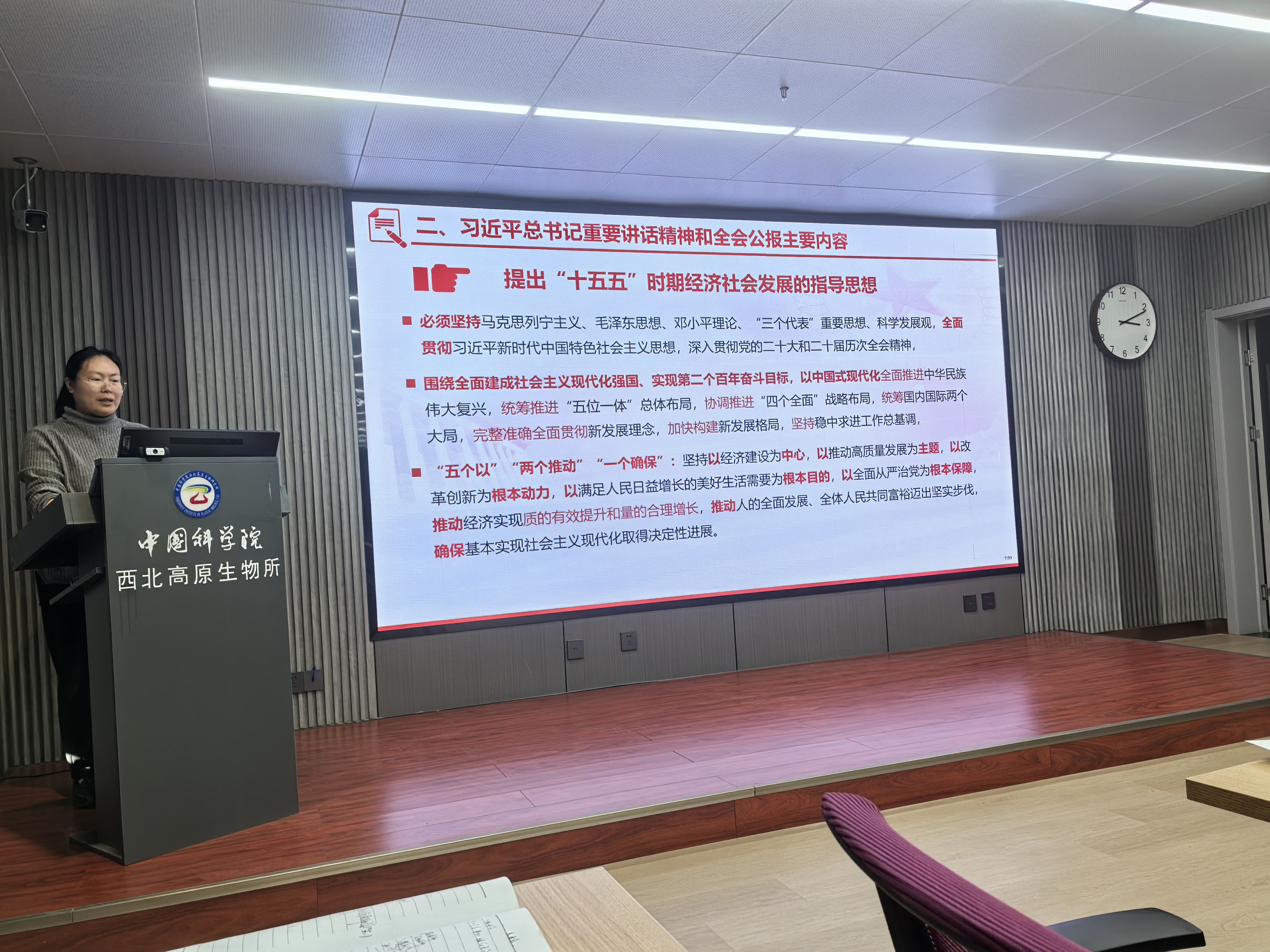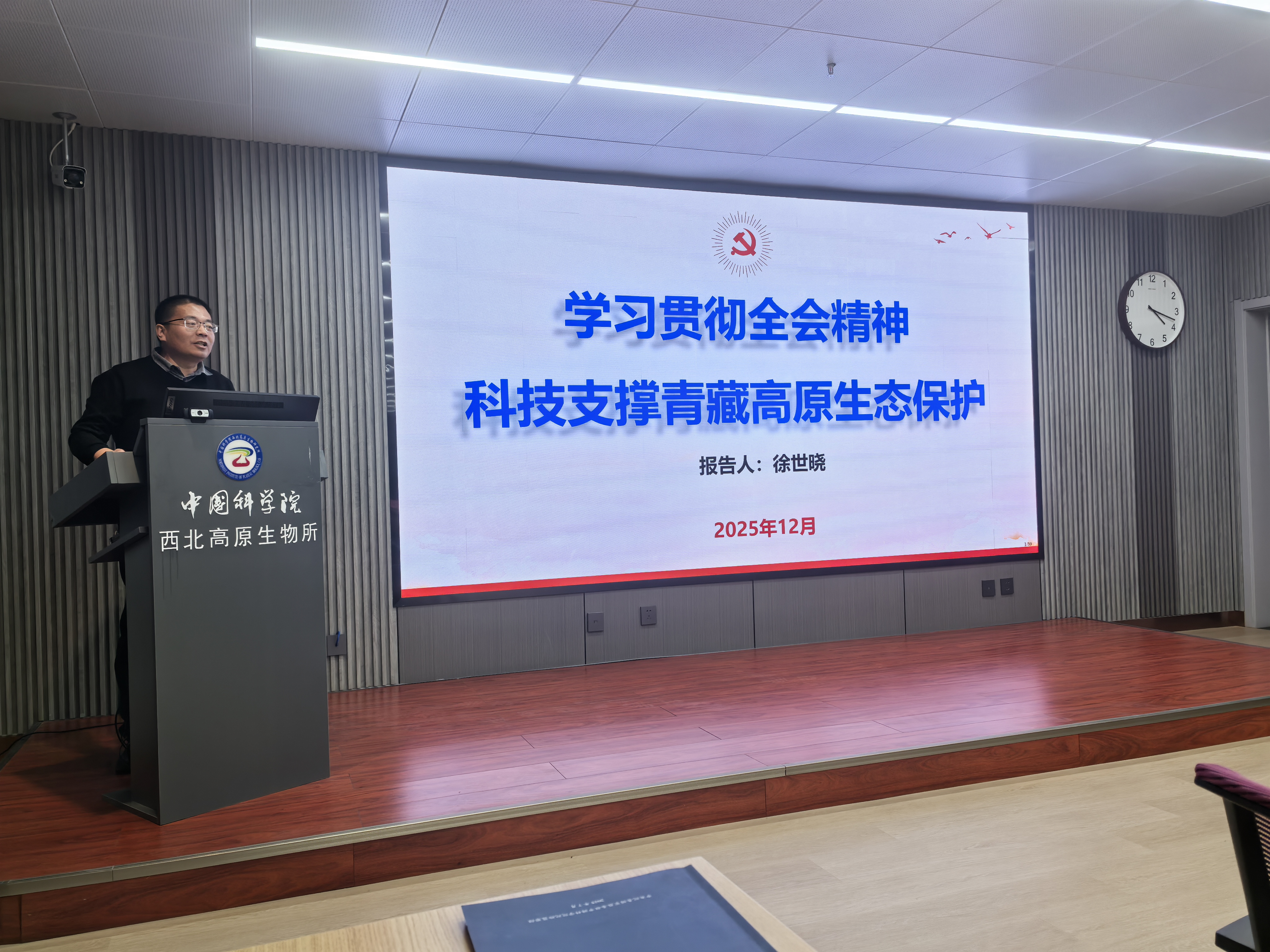 隨后,黨委委員、支部聯(lián)系人徐世曉以“學(xué)習(xí)貫徹全會精神?科技支撐青藏高原生態(tài)保護”為題講授黨課,黨課內(nèi)涵豐富、指導(dǎo)性強,緊密結(jié)合對全會精神的深刻領(lǐng)悟,聚焦青藏高原生態(tài)保護這一“國之大者”,深入闡述了科技工作者的時代責(zé)任與使命擔(dān)當(dāng)。