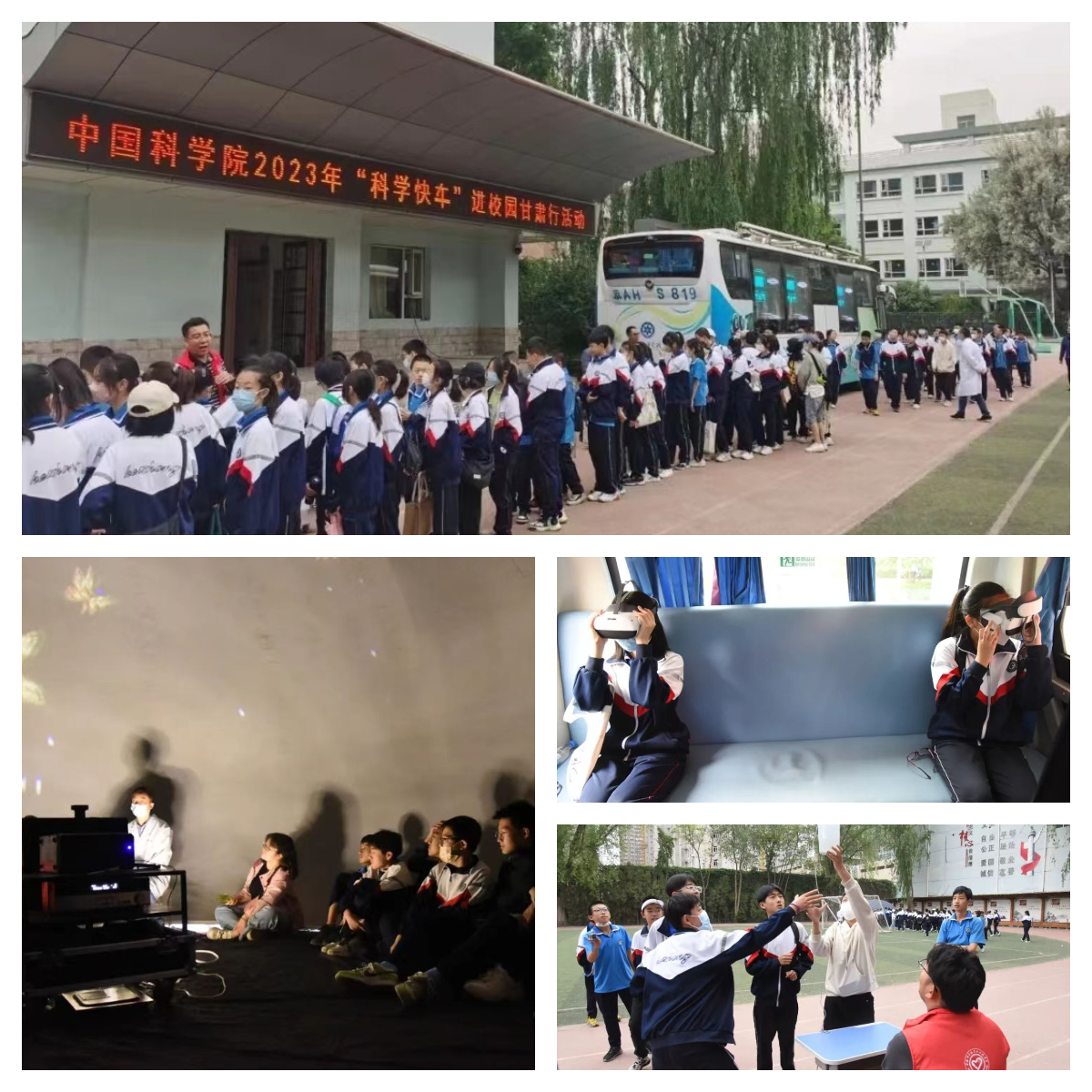 在為期七天的活動(dòng)中,“科學(xué)快車”以球幕影院、車廂內(nèi)互動(dòng)展廳、戶外可移動(dòng)展區(qū)等多種形式向同學(xué)們展示了中科院近年來(lái)重大創(chuàng)新科技成果,通過(guò)豐富多彩的展品、利用沉浸式環(huán)境和交互式手段,讓青少年在參與和互動(dòng)中體驗(yàn)到神奇的科技世界:在球幕影院,360度球幕科普微電影讓同學(xué)們直觀感性體驗(yàn)了科學(xué)探索太空、科學(xué)和諧自然、科學(xué)服務(wù)人類,領(lǐng)略了神奇的科技魅力,激發(fā)了偉大的科技?jí)粝?,球幕影院不時(shí)傳出孩子們的驚嘆與歡笑聲;在車廂內(nèi)互動(dòng)展廳,深空、深海、深地和深藍(lán)四個(gè)領(lǐng)域的科研成果深深吸引了同學(xué)們的眼球,他們有的小聲地與身邊的伙伴交流著,有的聚精會(huì)神地閱讀展板上的介紹文字,特別是當(dāng)同學(xué)們帶上VR眼鏡時(shí),可身臨其境的體驗(yàn)“深海探險(xiǎn)”,孩子們歡呼雀躍、意猶未盡;在戶外可移動(dòng)展區(qū),通過(guò)科普志愿者的精彩講解,同學(xué)們近距離觀察了中國(guó)空間站互動(dòng)模型、天地一體化量子信息通信網(wǎng)絡(luò)樣機(jī)模型、智能制造機(jī)械臂模型、大型低溫制冷裝備模型、人工合成淀粉模型和人造太陽(yáng)裝置模型等近年來(lái)中科院重大創(chuàng)新成果的模型展品,并且親自體驗(yàn)了“會(huì)跳高的珠子”、“磁阻尼演示儀”和“溫柔的電擊”等互動(dòng)性強(qiáng)的科普展品,加深了對(duì)相關(guān)科學(xué)原理的認(rèn)知。