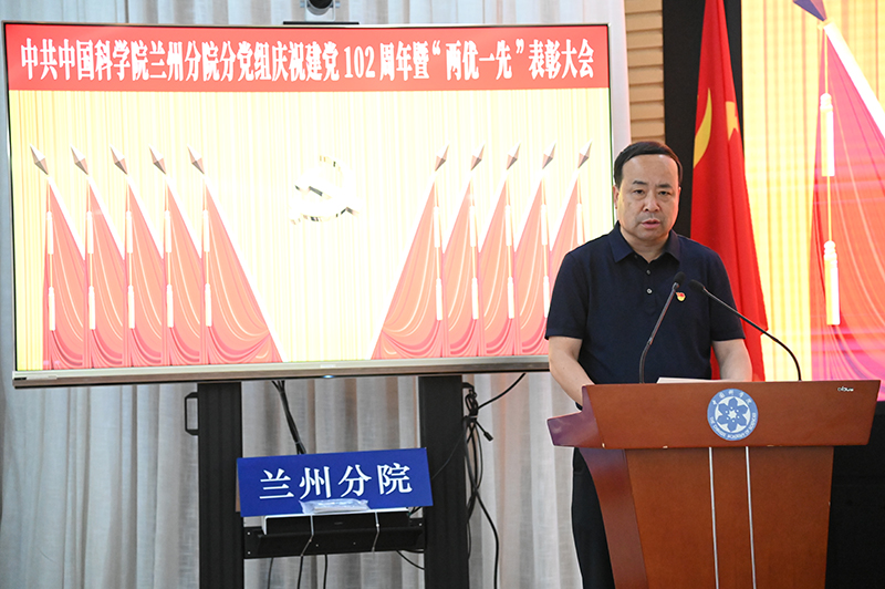 為慶祝中國共產(chǎn)黨成立102周年,深入開展學(xué)習(xí)貫徹習(xí)近平新時(shí)代中國特色社會(huì)主義思想主題教育,中共中國科學(xué)院蘭州分院分黨組、中共中國科學(xué)院蘭州分院系統(tǒng)單位委員會(huì)于6月26日召開慶祝中國共產(chǎn)黨成立102周年暨“兩優(yōu)一先”表彰大會(huì)。分黨組、系統(tǒng)單位黨委領(lǐng)導(dǎo)班子成員,蘭州、西寧地區(qū)院屬各單位黨委領(lǐng)導(dǎo)同志、黨辦主任,分院機(jī)關(guān)高級業(yè)務(wù)主管四級職員、各部門負(fù)責(zé)人、各黨支部(總支)書記以及受表彰的“兩優(yōu)一先”人員參加會(huì)議。會(huì)議由蘭州分院分黨組副書記、系統(tǒng)單位黨委副書記陳改學(xué)主持。