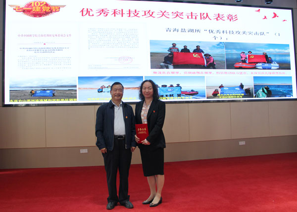 大會(huì)宣讀了《中共中國(guó)科學(xué)院黨組關(guān)于表彰中國(guó)科學(xué)院優(yōu)秀共產(chǎn)黨員、優(yōu)秀黨務(wù)工作者和先進(jìn)基層黨組織的決定》《中共中國(guó)科學(xué)院蘭州分院分黨組關(guān)于表彰先進(jìn)基層黨組織、優(yōu)秀共產(chǎn)黨員和優(yōu)秀黨務(wù)工作者的決定》。表彰了優(yōu)秀科技攻關(guān)突擊隊(duì)“張彭熹鹽湖科考突擊隊(duì)”。?
