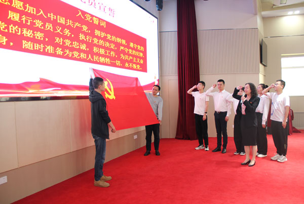 會(huì)議舉行了新黨員宣誓儀式。面向鮮紅的黨旗,副所長(zhǎng)王建萍帶領(lǐng)新黨員莊嚴(yán)宣誓,在場(chǎng)全體黨員重溫入黨誓詞。?