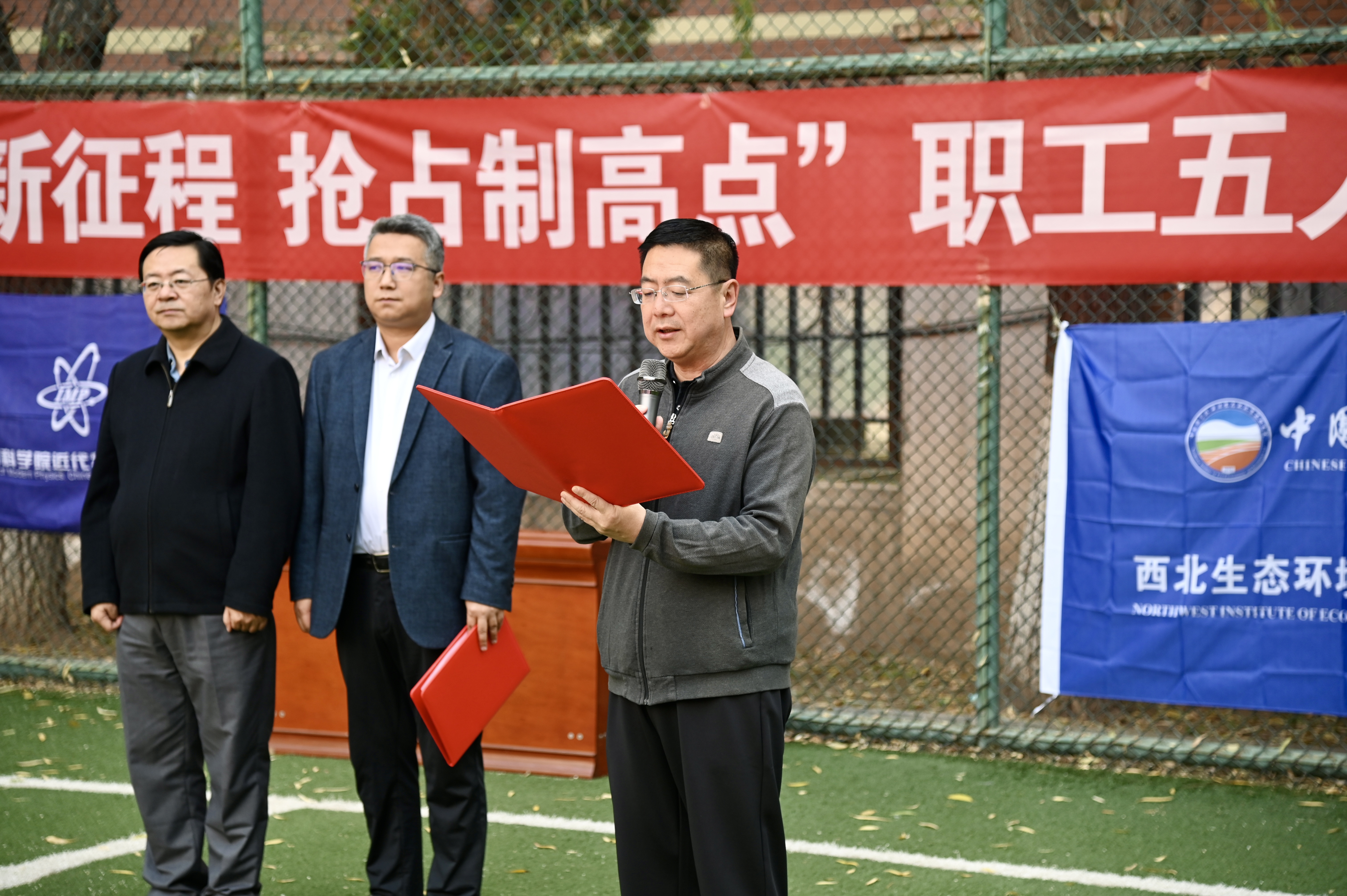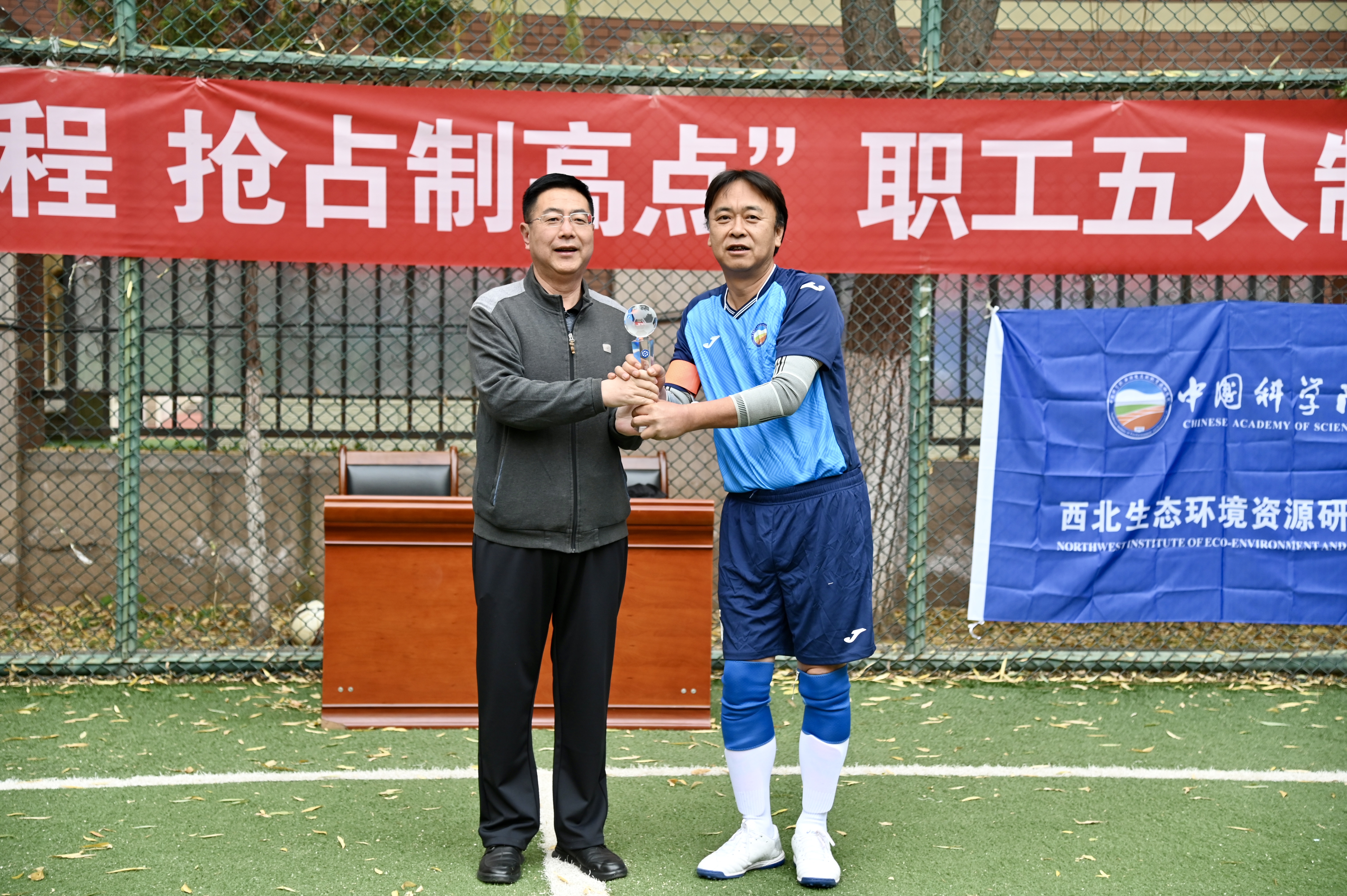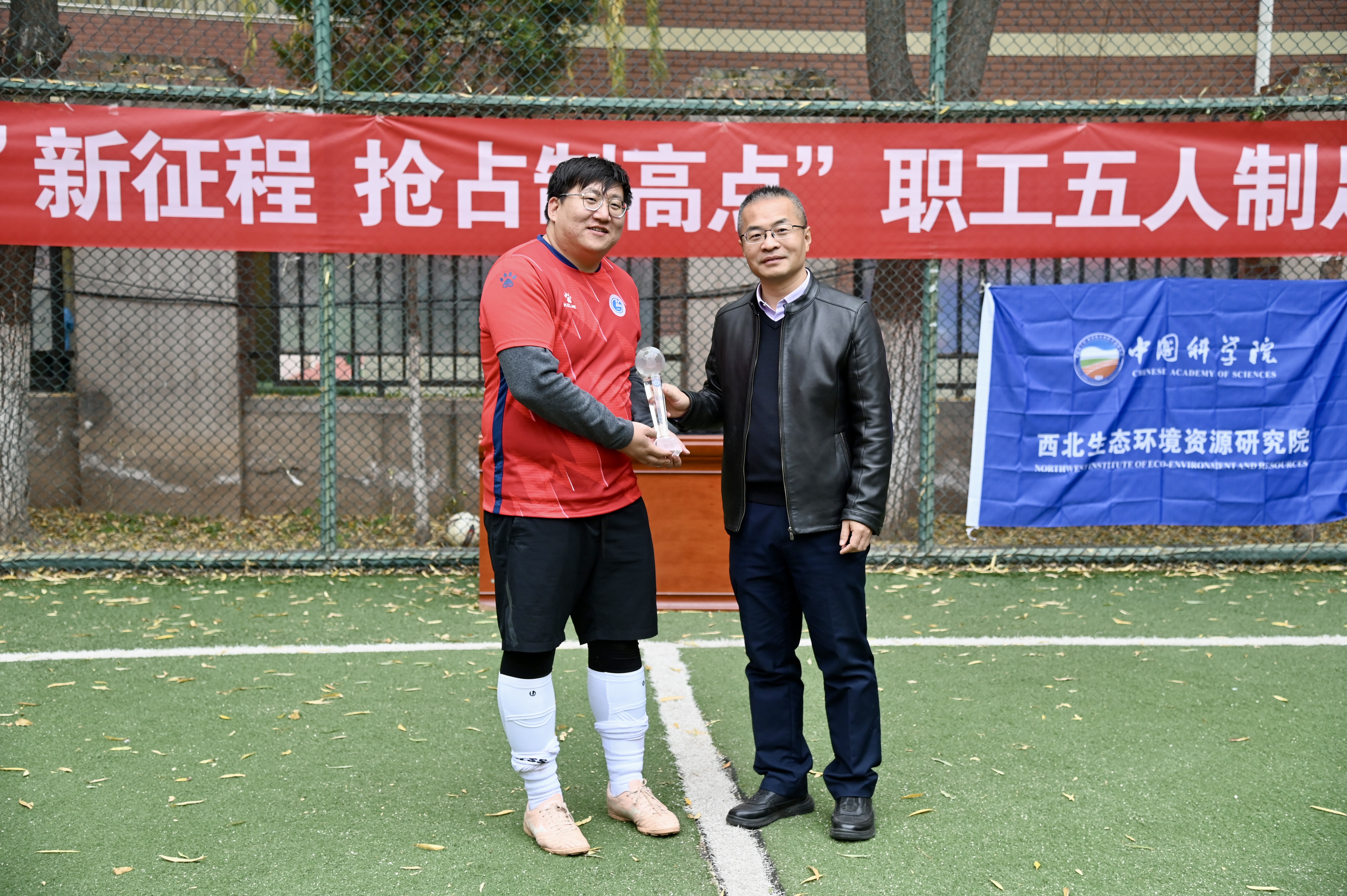 為慶祝中華人民共和國(guó)成立75周年和中國(guó)科學(xué)院建院75周年,進(jìn)一步加強(qiáng)蘭州分院群眾體育工作,促進(jìn)蘭州分院系統(tǒng)單位的交流,為搶占科技制高點(diǎn)提供健康支撐,11月14日至15日,由中國(guó)科學(xué)院蘭州分院工會(huì)委員會(huì)主辦,中國(guó)科學(xué)院西北生態(tài)環(huán)境資源研究院工會(huì)委員會(huì)承辦的蘭州分院系統(tǒng)“立‘足’新征程 搶占制高點(diǎn)”職工五人制足球比賽在蘭州分院足球場(chǎng)舉辦。中國(guó)科學(xué)院蘭州分院分黨組成員、紀(jì)檢組組長(zhǎng)吳建剛,蘭州化學(xué)物理研究所紀(jì)委書(shū)記張景光出席開(kāi)幕式。開(kāi)幕式由西北生態(tài)環(huán)境資源研究院院務(wù)委員、工會(huì)副主席范橋輝主持。吳建剛代表蘭州分院分黨組致辭,希望通過(guò)此次職工足球比賽展示出新時(shí)期蘭州分院系統(tǒng)職工體育運(yùn)動(dòng)新氣象,鼓勵(lì)全體職工以健康的體魄和良好的精神面貌為搶占科技制高點(diǎn)貢獻(xiàn)更多力量,并表示蘭州分院分黨組將一如既往地大力支持系統(tǒng)各單位不斷豐富職工文體活動(dòng),加強(qiáng)新時(shí)期分院系統(tǒng)創(chuàng)新文化建設(shè),努力為搶占科技制高點(diǎn)營(yíng)造團(tuán)結(jié)和諧的工作氛圍。