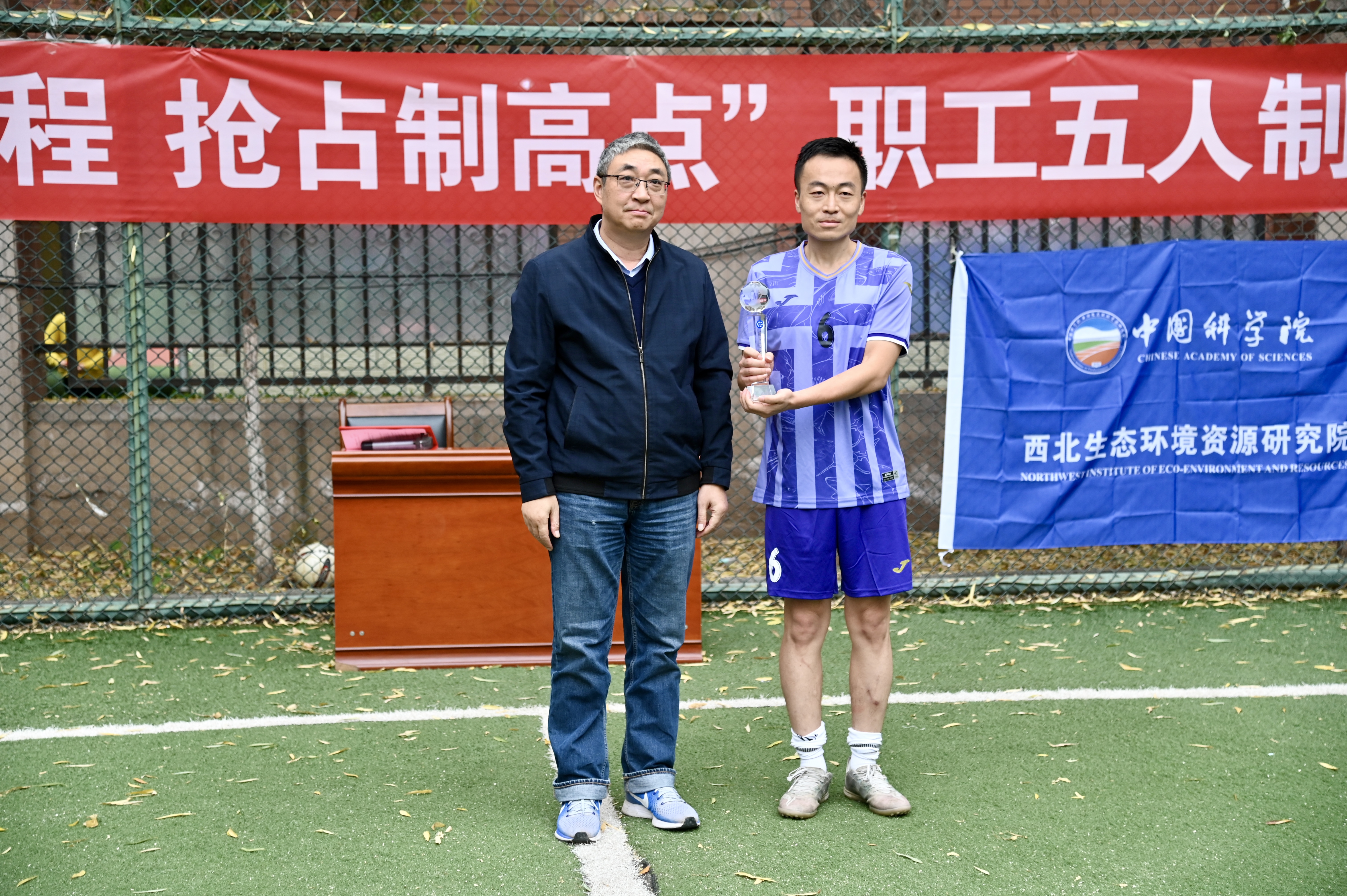 經(jīng)過(guò)為期兩天的激烈角逐和比拼,此次職工五人制足球比賽取得圓滿成功。閉幕式由西北生態(tài)環(huán)境資源研究院副院長(zhǎng)康世昌主持,蘭州分院分黨組成員、紀(jì)檢組組長(zhǎng)吳建剛,近代物理研究所副所長(zhǎng)王猛,蘭州化學(xué)物理研究所紀(jì)委書(shū)記張景光、蘭州分院工會(huì)副主席曹霞出席閉幕式并頒獎(jiǎng)。最終西北研究院代表隊(duì)摘得此次足球比賽的桂冠,近代物理所代表隊(duì)斬獲亞軍,蘭州化物所代表隊(duì)獲得季軍,蘭州分院代表隊(duì)和青海鹽湖所代表隊(duì)分別獲得體育道德風(fēng)尚獎(jiǎng)和團(tuán)結(jié)拼搏獎(jiǎng)。隊(duì)員馬旭君獲得金球獎(jiǎng)、陳敏獲得金靴獎(jiǎng)、郭建文獲得金手套獎(jiǎng)。