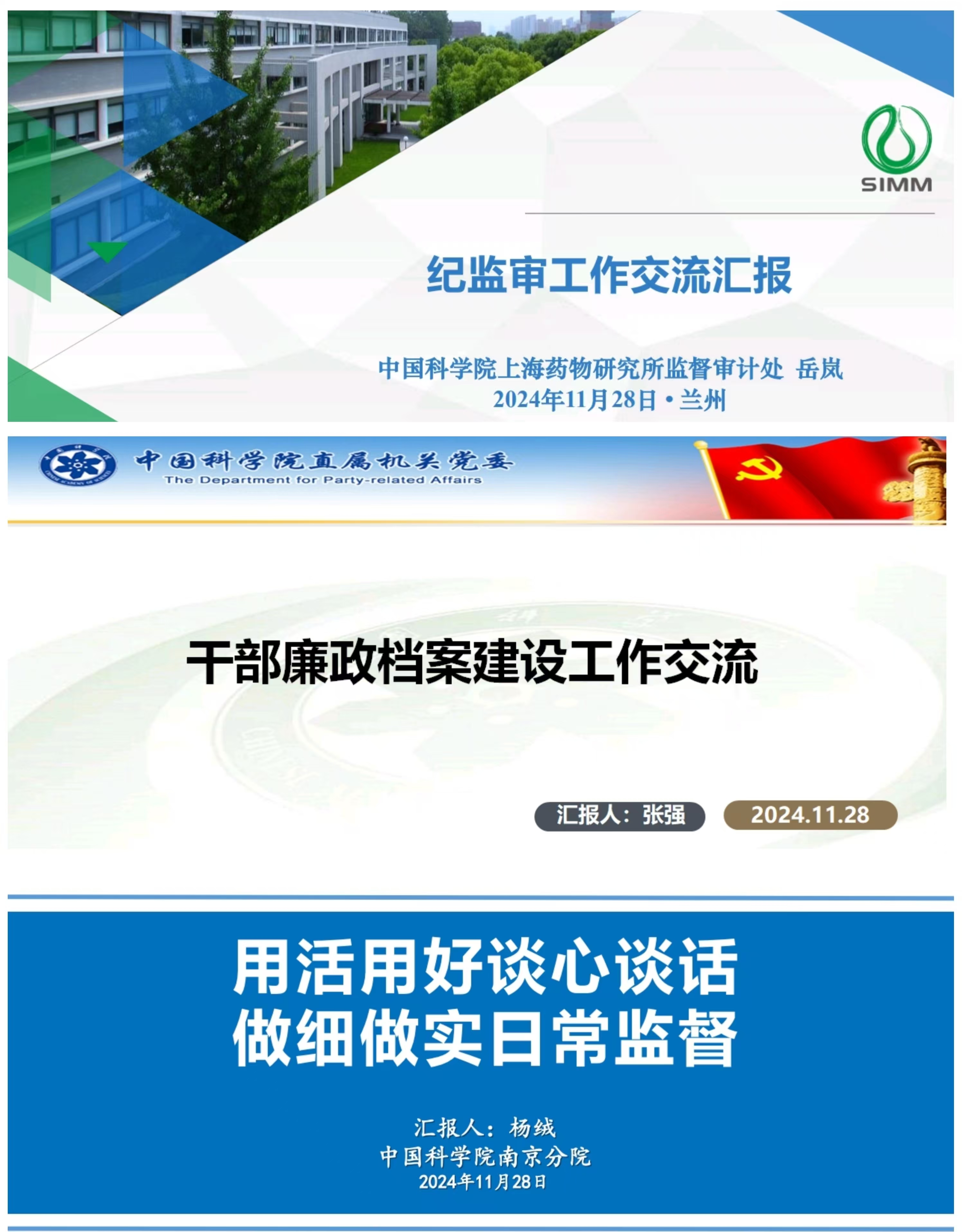 為進(jìn)一步加強(qiáng)黨員監(jiān)督管理,落實(shí)落細(xì)廉政風(fēng)險(xiǎn)防控,中國(guó)科學(xué)院直屬機(jī)關(guān)紀(jì)委紀(jì)檢工作部張強(qiáng)重點(diǎn)講述了“干部廉政檔案建設(shè)”工作經(jīng)驗(yàn);南京分院紀(jì)檢辦主任楊絨作題為《用活用好談心談話 做細(xì)做實(shí)日常監(jiān)督》專題報(bào)告;上海藥物所紀(jì)委副書記、監(jiān)審處處長(zhǎng)岳嵐就研究所紀(jì)監(jiān)審工作實(shí)務(wù)作分享交流。此外,參訓(xùn)學(xué)員還集中觀看了典型違紀(jì)違法行為警示教育視頻資料。