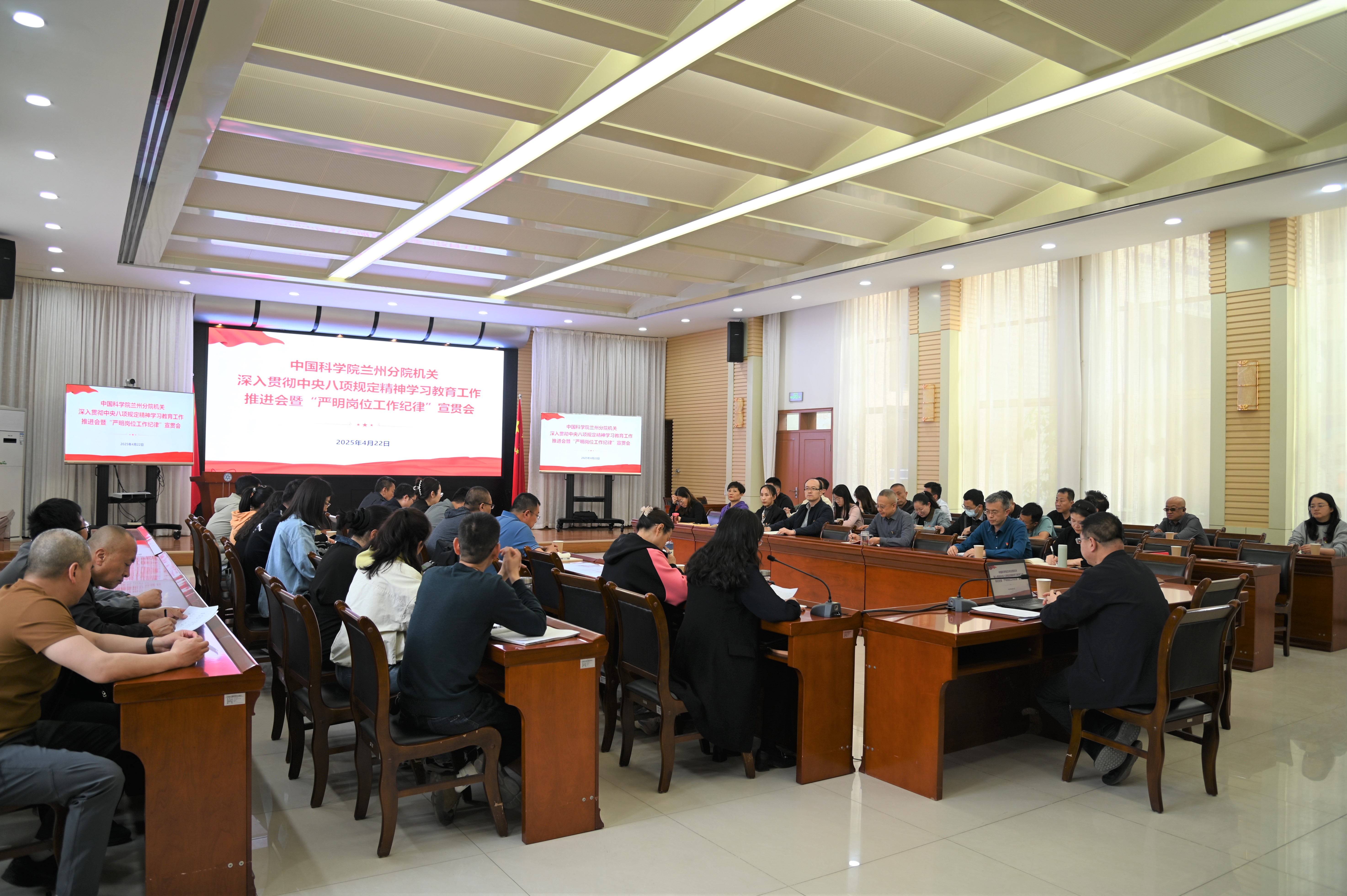 4月22日,中國科學(xué)院蘭州分院機關(guān)黨委召開深入貫徹中央八項規(guī)定精神學(xué)習(xí)教育工作推進會暨“嚴明崗位工作紀律”宣貫會。蘭州分院分黨組成員、紀檢組組長、機關(guān)黨委書記吳建剛及分院機關(guān)在職全體黨員近50人參加會議。會議由蘭州分院機關(guān)黨委副書記曹霞主持。