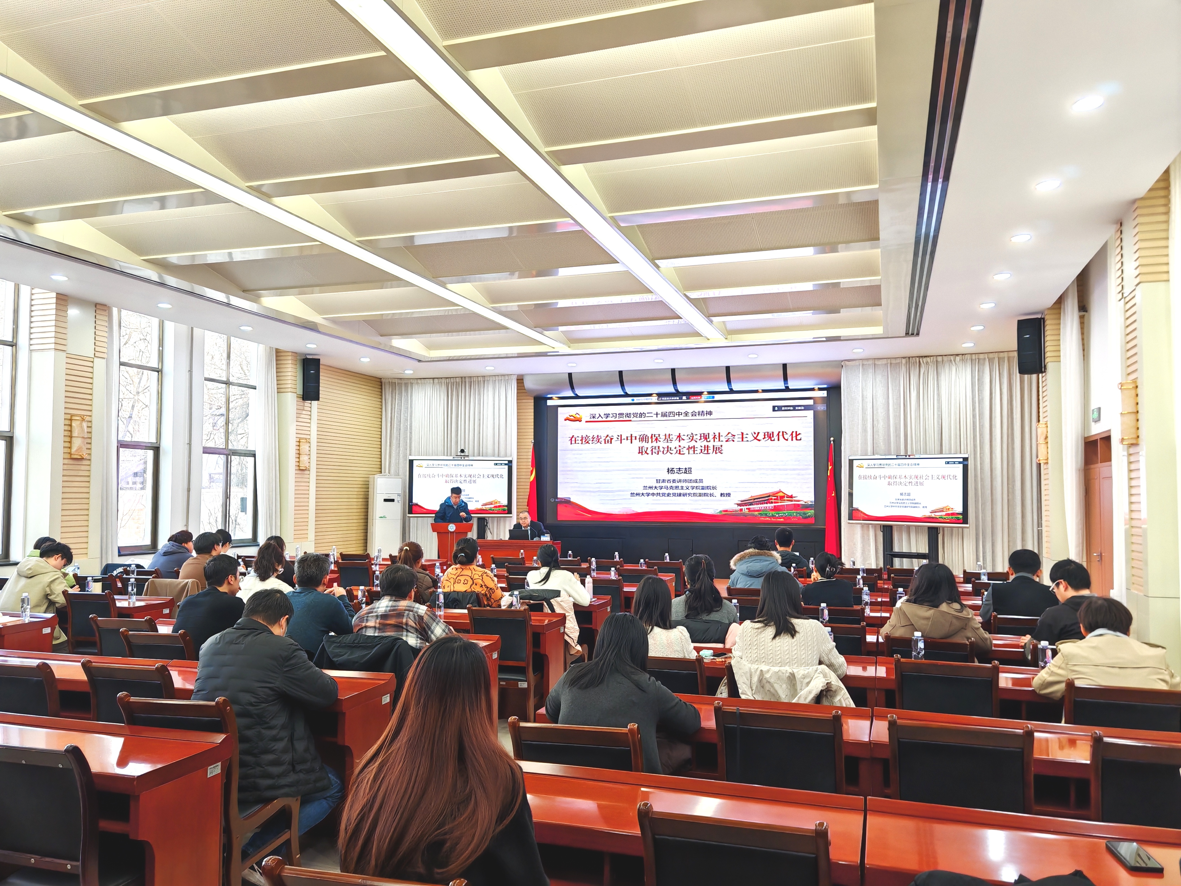 會(huì)議邀請(qǐng)?zhí)m州大學(xué)馬克思主義學(xué)院副院長(zhǎng)、教授楊志超作《在接續(xù)奮斗中確?;緦?shí)現(xiàn)社會(huì)主義現(xiàn)代化取得決定性進(jìn)展》專(zhuān)題報(bào)告。