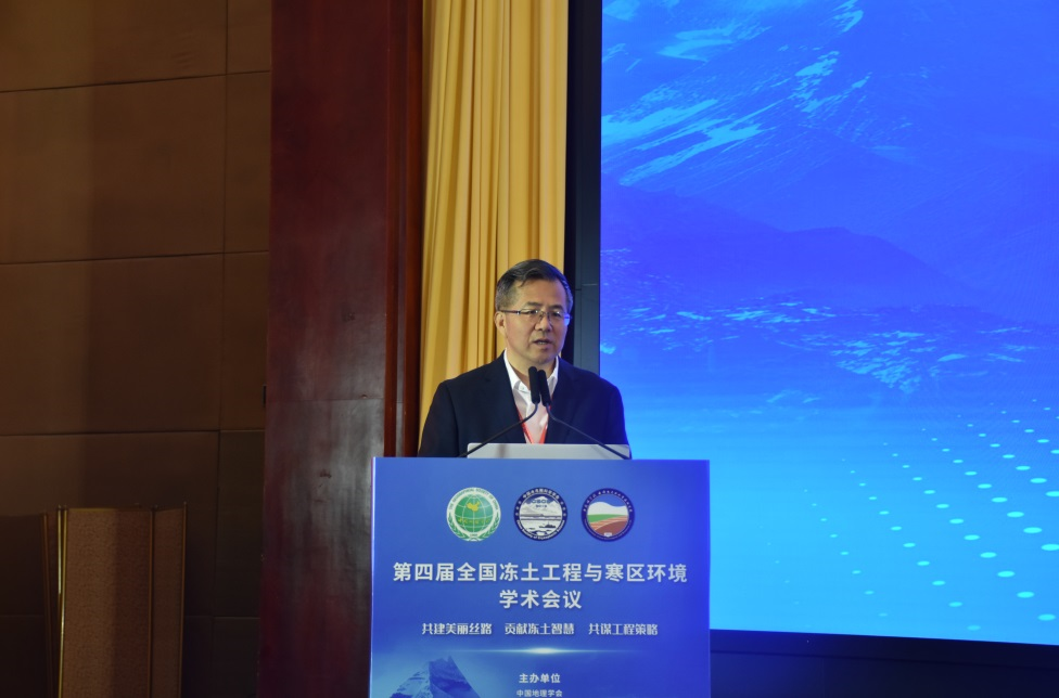 中國科學(xué)院院士、中國地理學(xué)會理事長陳發(fā)虎在致辭中回顧了我國冰川凍土研究歷史,高度評價了我國在凍土工程與寒區(qū)環(huán)境研究領(lǐng)域取得的可喜成績。中國地理學(xué)會副理事長兼秘書長張國友研究員在致辭中強(qiáng)調(diào),冰凍圈科學(xué)與凍土工程重點實驗室長期致力于冰川、凍土、寒區(qū)環(huán)境等方面的研究,為我國寒區(qū)資源開發(fā)、生態(tài)環(huán)境保護(hù)和重大凍土工程建設(shè)作出了重要貢獻(xiàn)。