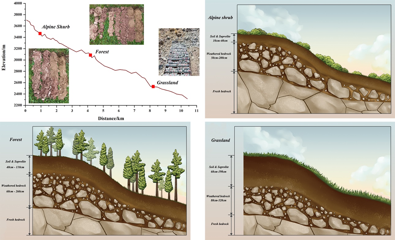 中國科學(xué)院西北生態(tài)環(huán)境資源研究院科研團(tuán)隊(duì)對祁連山典型小流域土壤和基巖風(fēng)化層特征進(jìn)行了全面調(diào)查,分析了不同景觀單元下基巖風(fēng)化層結(jié)構(gòu)和儲(chǔ)水能力的變化,驗(yàn)證了基巖風(fēng)化層儲(chǔ)水對徑流和植物用水的調(diào)節(jié)作用。