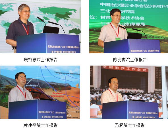 研討會以“荒漠化綜合防治和‘三北’工程建設”為主題,旨在深入學習貫徹落實習近平總書記關于加強荒漠化綜合防治和推進生態(tài)工程建設重要講話精神,推動山水林田湖草沙一體化保護和系統(tǒng)治理,總結和交流相關研究成果,促進人與自然和諧共生。大會邀請了丁一匯、姚檀棟、侯立安、鄭曉靜、康紹忠、陳發(fā)虎、黃建平、馮起、方小敏、朱教君等10位院士和王濤、李新榮、楊小平、董治寶、陳亞寧、鹿化煜、屈建軍、楊文斌等8位專家作主題報告,并組織了14個分論壇的專題報告。南志標、賴遠明、楊志峰院士參會??凳啦?、曹廣超、盧琦、李廣、勾曉華、楊興國分別主持大會主題報告。與會專家學者圍繞荒漠化綜合防治和“三北”工程建設的新理念、新技術,深入探討了荒漠化地區(qū)氣候變化與生態(tài)系統(tǒng)響應、荒漠生態(tài)修復與治理、全球氣候變化對西北暖濕化趨勢的影響等前沿問題。
