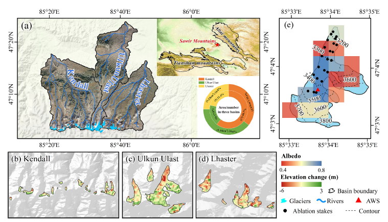 中國科學(xué)院西北生態(tài)環(huán)境資源研究院王璞玉研究員團(tuán)隊(duì)依托阿爾泰山冰凍圈科學(xué)與可持續(xù)發(fā)展綜合觀測(cè)研究站,綜合運(yùn)用模型模擬、衛(wèi)星遙感技術(shù)和野外觀測(cè),系統(tǒng)分析了薩吾爾山冰川反照率變化及其與冰川消融的關(guān)系,重建了該區(qū)冰川物質(zhì)平衡序列,闡述了其與融水徑流的變化趨勢(shì)以及對(duì)河川徑流的影響。