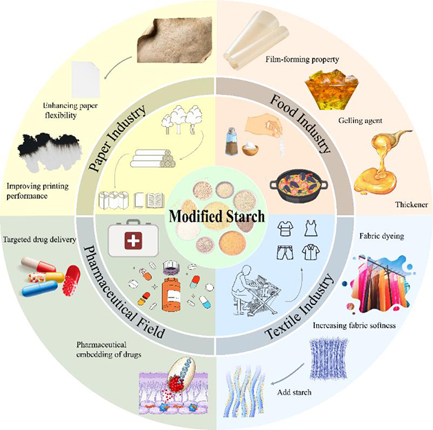 圖3.淀粉改性材料作為工業(yè)領(lǐng)域關(guān)鍵原材料的應(yīng)用