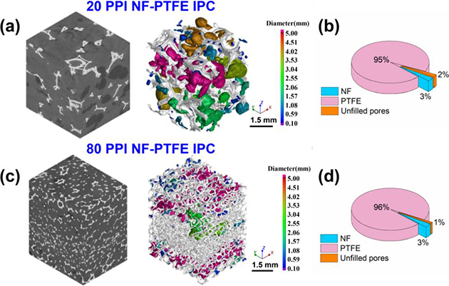 圖1. 泡沫鎳-聚四氟乙烯互穿相復(fù)合材料孔隙率分析