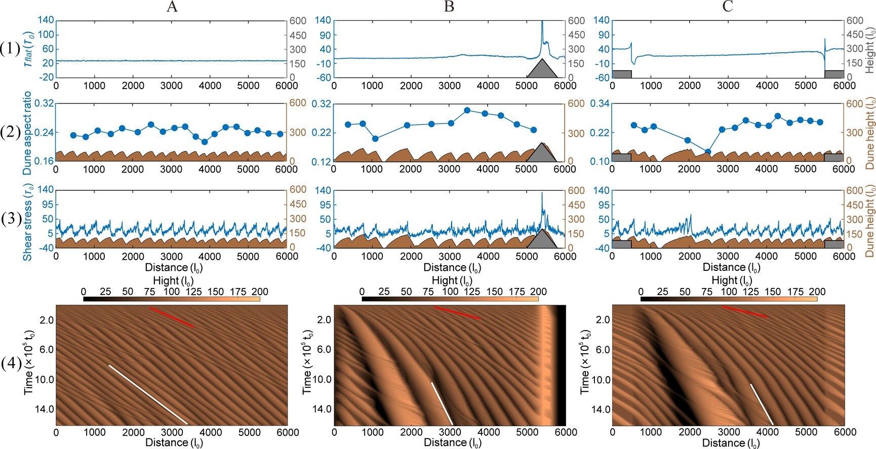 中國科學(xué)院西北生態(tài)環(huán)境資源研究院干旱區(qū)生態(tài)安全與可持續(xù)發(fā)展全國重點實驗室趙暉研究員課題組,聯(lián)合加州大學(xué)洛杉磯分校、浙江大學(xué)、巴黎城市大學(xué)地球物理研究所及中國科學(xué)院青藏高原研究所等單位,開展了全球尺度沙山(高度≥100m)的分布與形態(tài)特征分析,并結(jié)合數(shù)值模型揭示了高大沙山的發(fā)育機(jī)制。