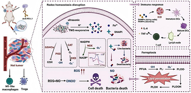 相關研究成果以“Axially Polarized O-Fe-N4 Single-Atom Enzyme Drives Clearance of Tumor-Resident Intracellular Microbiota and Potentiates Immunotherapy”為題發(fā)表在ACS Nano(2026, 20, 8704-8725)上,蘭州化物所景泉博士為論文第一作者,蘭州化物所海軍研究員、邸多隆研究員和蘭州大學汪寶堆教授、新疆大學范仲雄教授為論文共同通訊作者,蘭州化物所為第一完成單位。