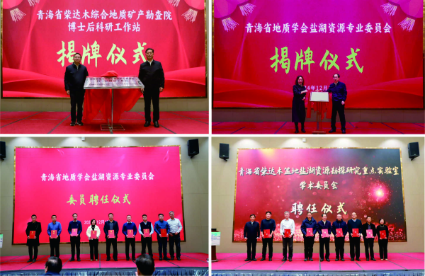 開(kāi)幕式上,青海省自然資源廳黨組副書(shū)記、省地礦局黨委副書(shū)記、局長(zhǎng)張啟元和中國(guó)科學(xué)院青海鹽湖研究所副所長(zhǎng)(主持工作)鄭詩(shī)禮為“青海省柴達(dá)木綜合地質(zhì)礦產(chǎn)勘查院博士后科研工作站”揭牌。青海省地質(zhì)學(xué)會(huì)常務(wù)副理事長(zhǎng)、省地礦局總工程師潘彤,青海鹽湖所黨委副書(shū)記、副所長(zhǎng)、青海省地質(zhì)學(xué)會(huì)副理事長(zhǎng)王建萍為“青海省地質(zhì)學(xué)會(huì)鹽湖資源專(zhuān)業(yè)委員會(huì)”揭牌。