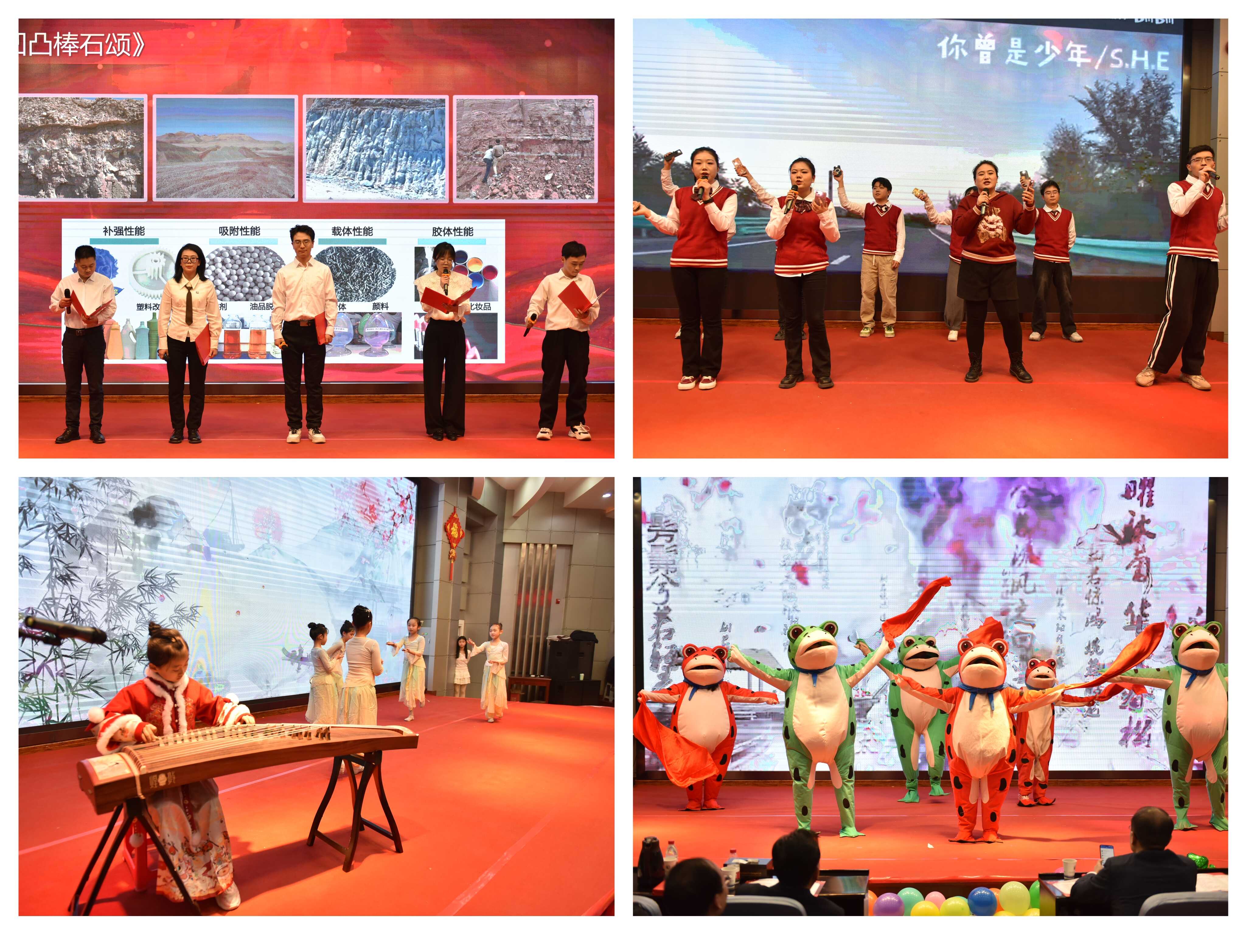 聯(lián)歡會在舞蹈《張燈結(jié)彩》歡快的節(jié)奏中拉開序幕。所領(lǐng)導(dǎo)班子全體成員共同朗誦的詩歌《勇?lián)厝?科技報國》高亢激昂,深情回顧了研究所六十余年奮斗歷程與輝煌成就,共同擘畫了未來發(fā)展的美好藍(lán)圖,充分展現(xiàn)了蘭州化物所人再赴新征程的百倍信心。退休老同志們表演的合唱《走向復(fù)興》《革命人永遠(yuǎn)是年輕》整齊嘹亮,表達(dá)了老一輩科研工作者扎根西部、無怨無悔,開拓奮進(jìn)、科技報國的壯志情懷。小品《后宮甄嬛·科研傳》、三句半《勁在科研》則以幽默詼諧的方式再現(xiàn)了科研工作中的樂趣與故事。合唱《如愿》表達(dá)出對祖國的美好祝愿。書法與太極拳表演《太極書韻》剛?cè)岵?jì)、行云流水,展示了中華文化的魅力。舞蹈與古箏演奏《漁舟唱晚》展現(xiàn)了科苑少年的自信與風(fēng)采。獨唱《今天》《卓瑪》歌聲悠揚婉轉(zhuǎn),贏得現(xiàn)場陣陣掌聲,詩朗誦《凹凸棒石頌》抒發(fā)了青年科技工作者的激情與信念?!稛o名的人》《悲傷蛙不悲傷》《唱響世界,奔跑少年》等舞蹈和歌曲串燒節(jié)目充分展現(xiàn)出廣大研究生青春昂揚、蓬勃向上的絢麗風(fēng)采。一個個精彩的節(jié)目將聯(lián)歡會氣氛一次次推向高潮,中間穿插的游戲和抽獎環(huán)節(jié),更是讓全場觀眾體驗到層出不窮的驚喜。