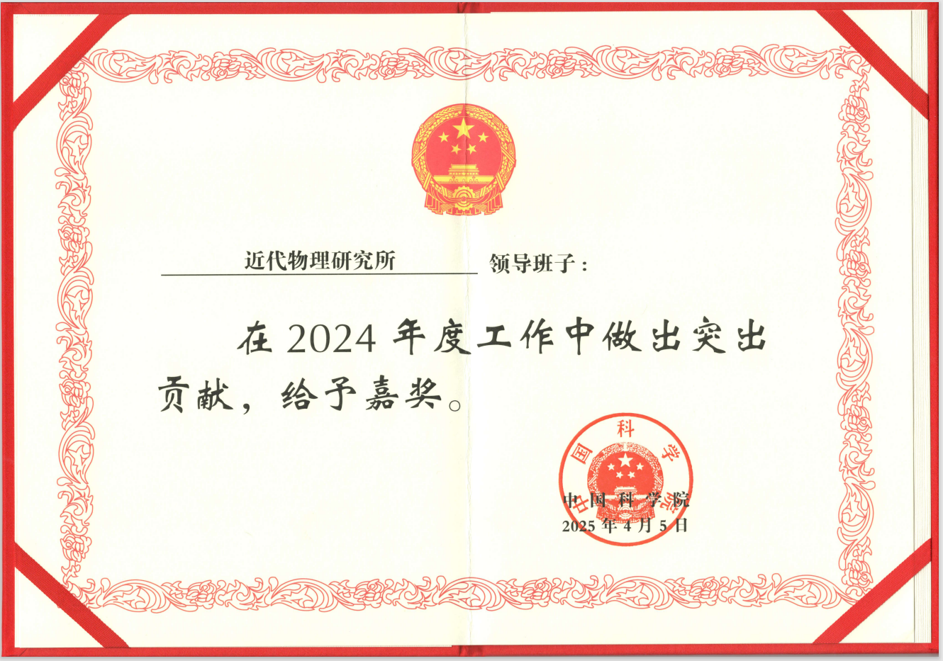 近代物理所領(lǐng)導(dǎo)班子榮獲中國科學(xué)院嘉獎(jiǎng)