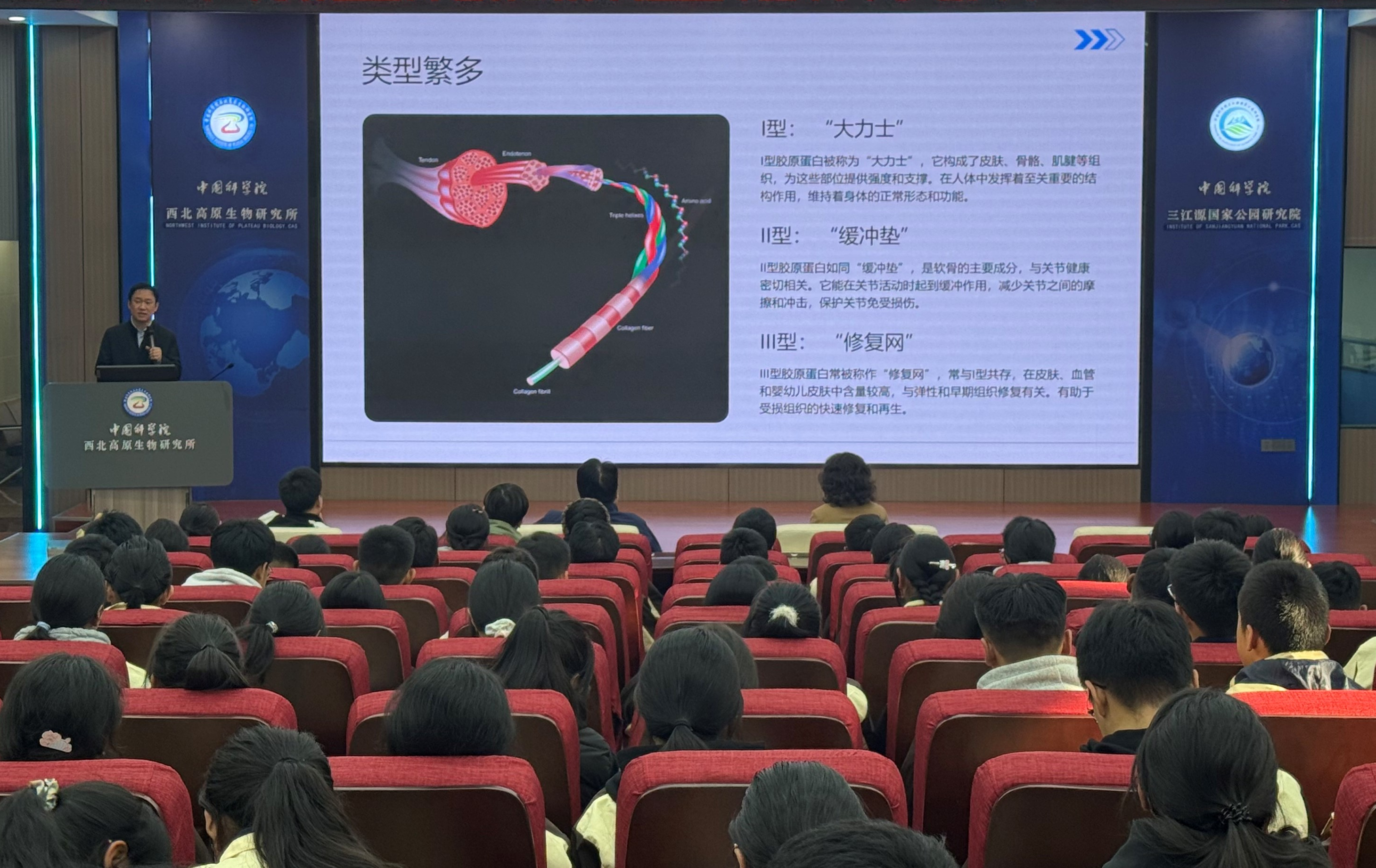 上午,在西北高原所學(xué)術(shù)報(bào)告廳內(nèi),青海省青藏高原生物學(xué)科研科普基地主任陳曉澄以科普講座“青藏高原生物標(biāo)本館里的珍貴記憶”拉開(kāi)了活動(dòng)序幕。西寧植物園帶來(lái)的科學(xué)實(shí)驗(yàn)表演“從捕蠅草的生存智慧看自然法則”,以生動(dòng)的“植物獵手”故事,讓現(xiàn)場(chǎng)觀眾對(duì)自然法則的認(rèn)知從微觀細(xì)節(jié)延伸到宏觀生態(tài);王璐帶來(lái)的"華?;ā獜陌l(fā)現(xiàn)到守護(hù)的生態(tài)故事"科普演講,則讓科學(xué)節(jié)的“自然敘事”多了一份厚重的守護(hù)情懷。西北高原所副研究員江磊帶來(lái)的“膠原蛋白在生命過(guò)程中的作用”科普講座,更是將“膠原蛋白”這個(gè)在護(hù)膚品、保健品宣傳中的高頻詞匯,變得清晰而立體。