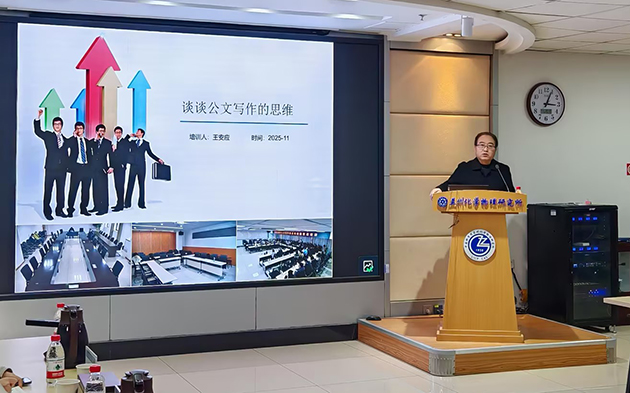 培訓(xùn)邀請(qǐng)?zhí)m州大學(xué)王安應(yīng)老師作了題為“談?wù)劰膶懽鞯乃季S”的專題報(bào)告。他從思維在公文寫作中的作用、公文寫作的底層邏輯和如何正確使用AI工具等方面解析了公文寫作的本質(zhì)規(guī)律,通過典型案例對(duì)比,生動(dòng)闡釋了“邏輯清晰、格式規(guī)范、語言得體”在公文寫作中的重要性,為參會(huì)人員打開了公文寫作的新思路。蘭州化物所黨委辦公室(所辦公室)主任尹曉葉和綜合檔案室副主任張磊分別圍繞公文處理常見問題和文書檔案建檔規(guī)范作了主題報(bào)告。