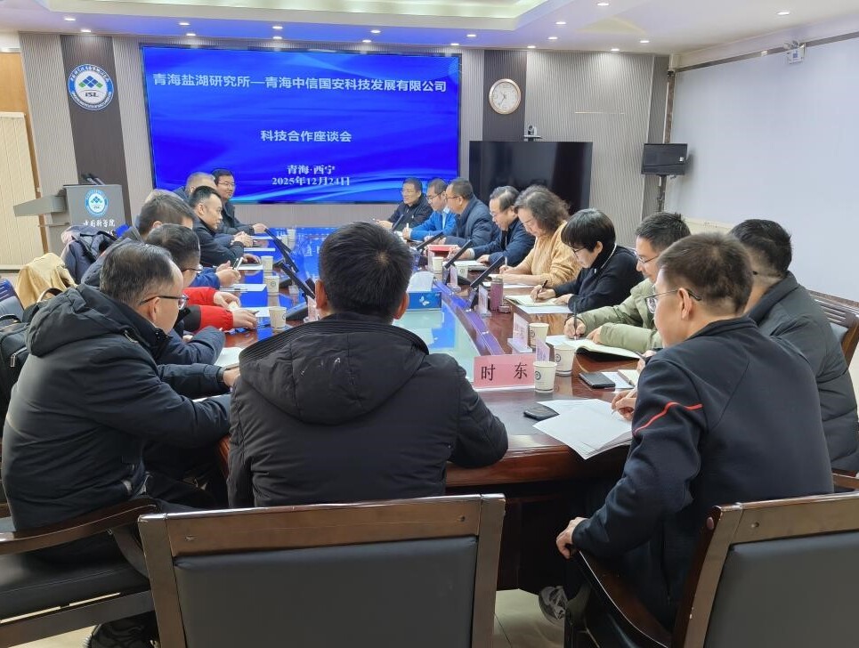 12月24日,青海中信國安科技發(fā)展有限公司總經(jīng)理何汪海一行到青海鹽湖所開展需求對接。青海鹽湖所副所長(主持工作)鄭詩禮、黨委副書記、副所長王建萍、副所長馮海濤參加座談。