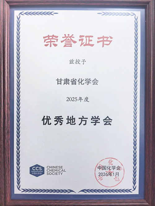 甘肅省化學(xué)會(huì)被評為“2025年度優(yōu)秀地方學(xué)會(huì)”