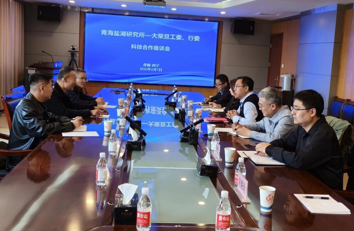 4月7日,大柴旦工委副書記、行委主任劉桂陽一行訪問中國科學院青海鹽湖研究所,青海鹽湖所副所長馮海濤參加座談。