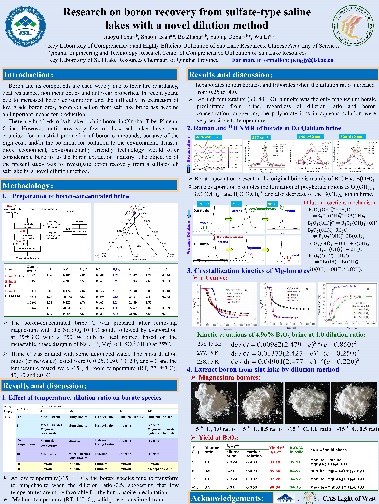 經(jīng)過(guò)專家評(píng)審和網(wǎng)絡(luò)投票,最終秦占杰博士《Origin and recharge model of the Late Cretaceous evaporites in the Khorat Plateau》和彭嬌玉博士《Research on Boron Recovery from Sulfate-type Saline Lakes with a Novel Dilution Method》,王廣國(guó)同學(xué)《Structure Study of Aqueous CaCl2 Solutions by Molecular Dynamics Simulations》和高靖易同學(xué)《Prehistoric human Activity and its Environmental Background in Lake Donggi Cona Basin, Northeastern Tibetan Plateau》分別斬獲大賽職工組和研究生組一等獎(jiǎng);高春亮博士等6名同志獲得二等獎(jiǎng),孫艷霞博士等10名同志獲得三等獎(jiǎng),本屆大賽為獲獎(jiǎng)?wù)咴O(shè)計(jì)了精美的證書。