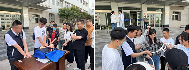 培訓(xùn)結(jié)束后,在戶外開展了突發(fā)事件演練。教官逐一演示了心肺復(fù)蘇、海姆立克急救法和逃生自救繩索打結(jié),介紹了每個(gè)步驟的操作要點(diǎn),參會(huì)人員親身操作體驗(yàn),提升了應(yīng)急自救、互救技能。