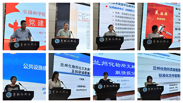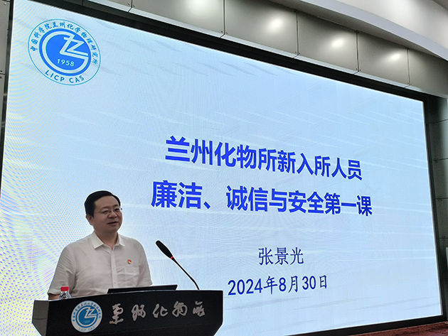 所長周峰作了題為“蘭州化物所所情及科技創(chuàng)新工作”的報告,介紹了研究所歷史沿革與主要貢獻、科研平臺與人才隊伍、承擔任務與成果產出、科技合作與成果轉化、“十四五”規(guī)劃與目標等情況。紀委書記張景光作了題為“廉潔、誠信與安全第一課”的報告,組織學習了黨的二十屆三中全會精神和習近平總書記關于全面從嚴治黨、自我革命、科技創(chuàng)新的重要論述,傳達了中國科學院黨組2024年夏季擴大會議和院科研誠信會議的有關工作部署,通報了違紀違規(guī)和科研失信行為的典型案例。