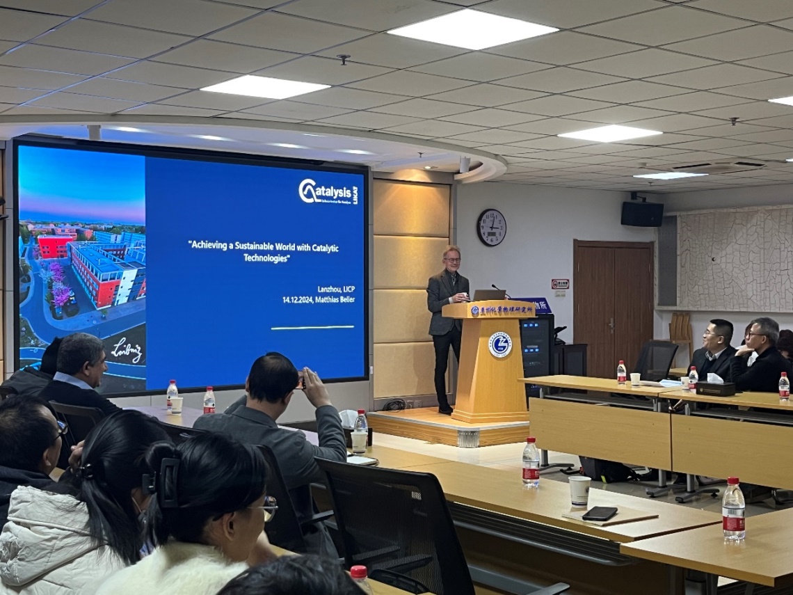 12月14日,德國萊布尼茨催化研究所(LIKAT)Mattias Beller院士應(yīng)邀訪問中國科學(xué)院蘭州化學(xué)物理研究所,并作了題為“Achieving a Sustainable World with Catalytic Technologies”的學(xué)術(shù)報(bào)告。