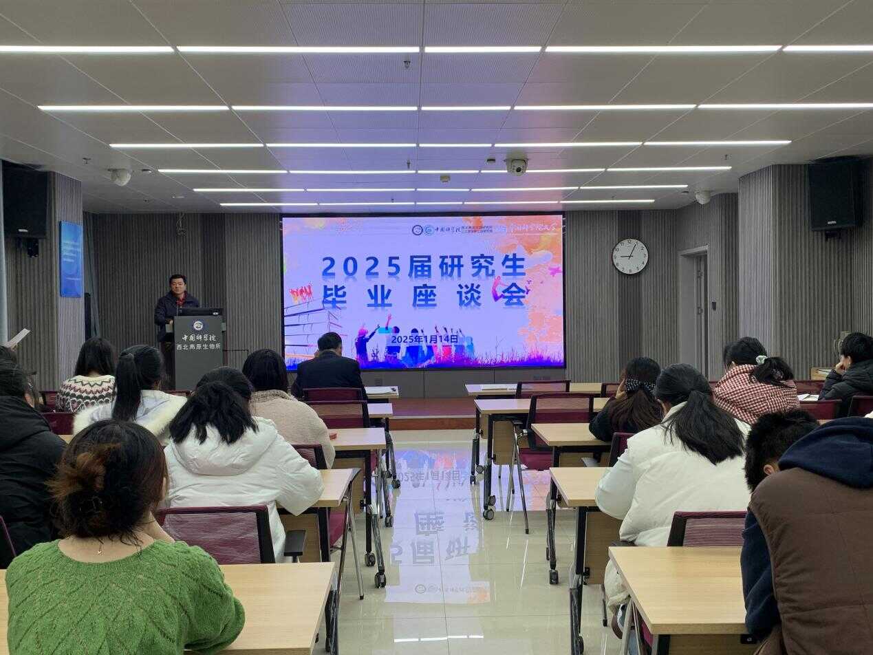 1月14日上午,中國科學院西北高原生物研究所舉辦2025屆畢業(yè)研究生座談會,所長、黨委書記陳世龍,副所長楊其恩,人事教育處副處長楊紅霞出席會議,學生主管羅謹、2025屆畢業(yè)研究生共計60余人參會,會議由楊紅霞主持。