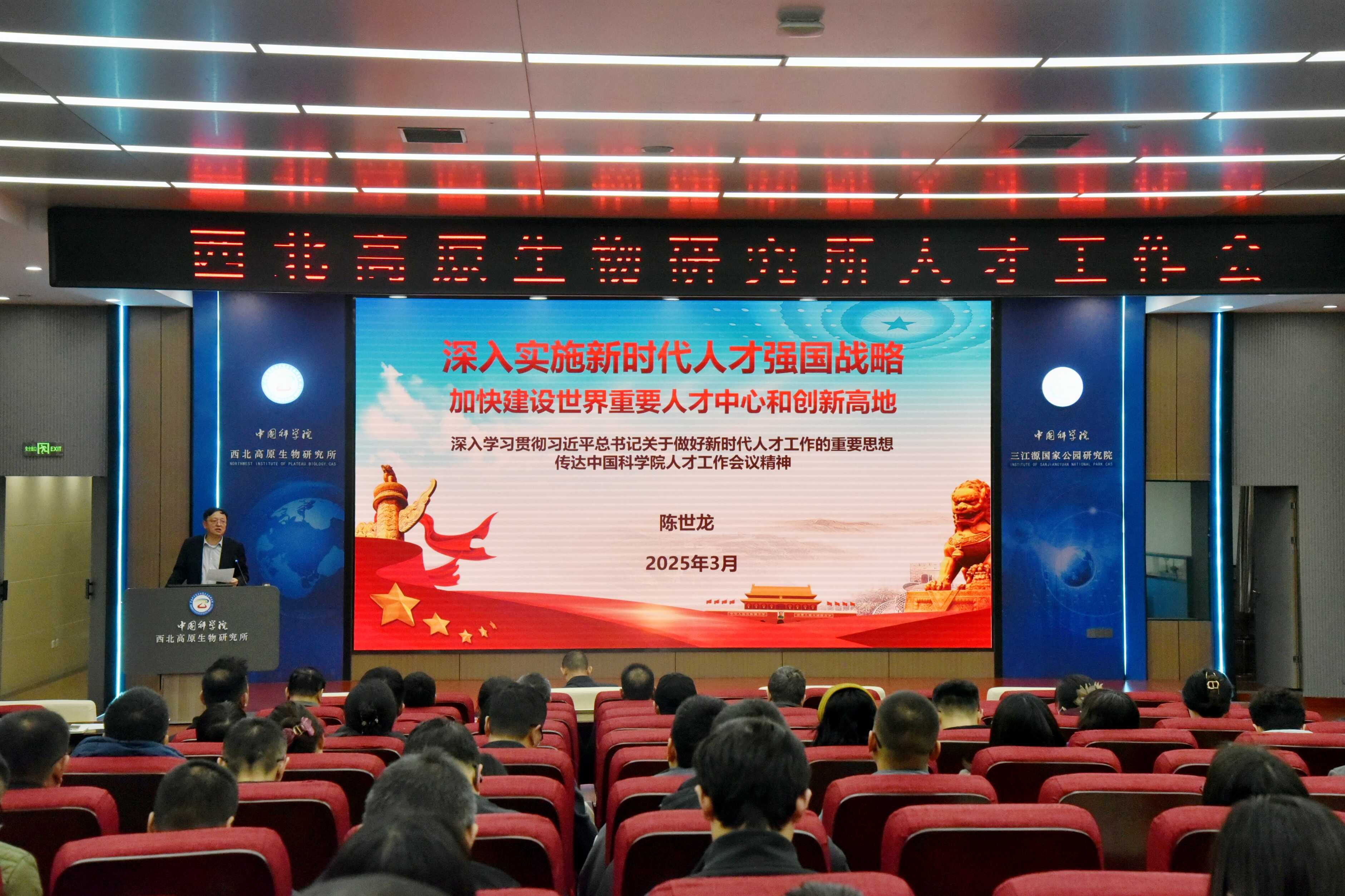 3月12日上午,中國科學院西北高原生物研究所召開人才工作專題會議。會議以研究所巡視整改為重要契機,以全面學習貫徹習近平總書記關(guān)于做好新時代人才工作的重要思想,持續(xù)貫徹落實院黨組關(guān)于新時期加強人才工作的部署要求為主要學習內(nèi)容,以推進研究所人才隊伍高質(zhì)量發(fā)展,全力保障全所上下凝心聚力搶占科技制高點為目標要求。研究所全體職工參加本次會議,會議分為兩階段進行,由所長、黨委書記陳世龍主持。