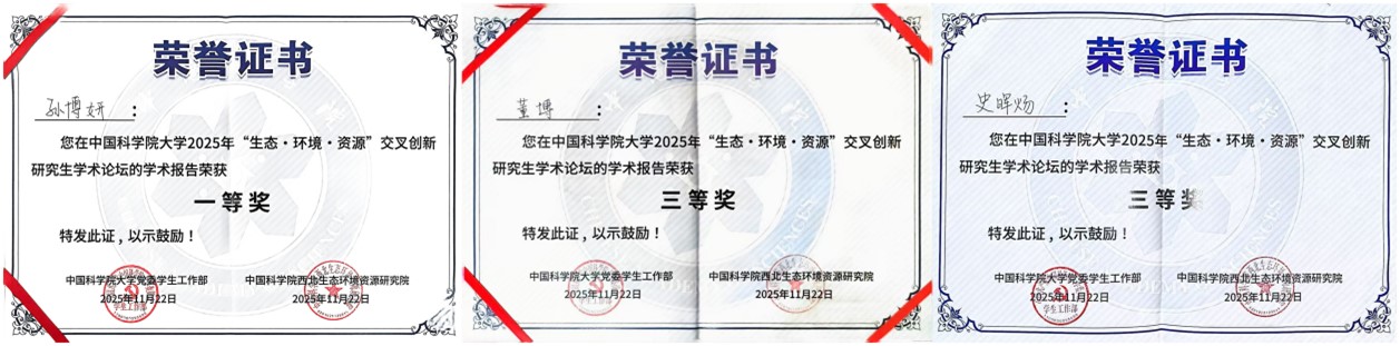 論壇設(shè)置“生態(tài)與環(huán)境領(lǐng)域組”“資源與工程領(lǐng)域組”及“弘揚(yáng)科學(xué)家精神與研究生思政教育管理研討組”三大專題板塊,聚焦國(guó)家戰(zhàn)略需求與科技前沿,推動(dòng)學(xué)科融合與協(xié)同創(chuàng)新。青海鹽湖所研究生緊扣青藏高原生態(tài)安全屏障、柴達(dá)木盆地資源高效利用與環(huán)境保護(hù)等關(guān)鍵科學(xué)問(wèn)題等多個(gè)方向進(jìn)行學(xué)術(shù)報(bào)告和墻報(bào)展示?,F(xiàn)場(chǎng)討論熱烈,學(xué)術(shù)氛圍濃厚。通過(guò)這一高水平平臺(tái),青海鹽湖所研究生不僅展示了最新的科研進(jìn)展,更與兄弟院所建立了深入的學(xué)術(shù)聯(lián)系,為后續(xù)合作奠定了良好基礎(chǔ)。參會(huì)研究生們憑借出色表現(xiàn),成績(jī)斐然。孫博妍榮獲優(yōu)秀學(xué)術(shù)報(bào)告一等獎(jiǎng);董博與史暉煬榮獲優(yōu)秀學(xué)術(shù)報(bào)告三等獎(jiǎng);馬智超、甄璐菲、盧文薇的墻報(bào)榮獲優(yōu)秀墻報(bào)獎(jiǎng)。