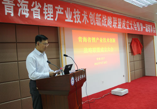 青海省鋰產(chǎn)業(yè)技術(shù)創(chuàng)新戰(zhàn)略聯(lián)盟成立大會上,青海鹽湖所主持工作的副所長段東平代表鋰聯(lián)盟籌備組匯報了聯(lián)盟成立背景及籌備工作情況,青海省科技廳副廳長張超遠宣讀了成立青海省鋰產(chǎn)業(yè)技術(shù)創(chuàng)新戰(zhàn)略聯(lián)盟的文件,并與青海省質(zhì)量技術(shù)監(jiān)督局副局長王穎鳴共同為青海省鋰產(chǎn)業(yè)技術(shù)創(chuàng)新戰(zhàn)略聯(lián)盟揭牌。